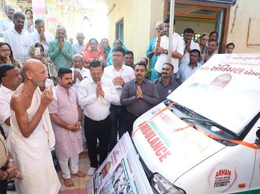 પવિત્ર યાત્રાધામ પાલીતાણા ની પાવન ભૂમિ માં ઘેટી ગામ મધ્યે દેરાસરના પ્રાંગણમાં પ.પુ. રાષ્ટ્ર સંત, ગુરુદેવ શ્રી નમ્ર મુનિ મ.સા. પ્રેરિત અર્હમ એનિમલ એમ્બ્યુલન્સ સેવા લાભાર્થી પરિવાર મીત, પ્રિયા, અને સૂચિત મહેતા પરિવાર રાજકોટ ના સહયોગથી પ.પૂ. આજીવન આયંબિલ તપસ્વી આ.ભ.શ્રી હેમ વલ્લભ સૂરીશ્વરજી મ.સા.ના વરદ હસ્તે લોકાર્પણ કરવામાં આવ્યું. આ સેવા માટે અર્હમ સેવા ગ્રુપ – 24×7 હેલ્પલાઇન નંબર 6262808003 પર ઘાયલ પશુ સારવાર માટે કોલ કરી શકાશે. આ પ્રસંગે માનનીય શ્રી મિહીરભાઇ બારૈયા સાહેબ (Dy.SP શ્રી પાલીતાણા) જૈન અગ્રણી શ્રી હિતેશભાઈ અજમેરા તથા શ્રી નરેન્દ્રભાઈ શાહ, પૂ.શરદ બાપુ (શ્રી દયાનંદ ગૌશાળા ઘેટી) શ્રી પ્રવીણભાઈ ગઢવી, અર્હમ સેવા ગ્રુપ ભાવનગર (સમીરભાઈ તથા નિલેશભાઈ) તેમજ પત્રકાર મીડિયા પરિવાર ગૌસેવા સમિતિ ના કાર્યકર્તા મિત્રો વગેરે મહાનુભાવો ની ઉપસ્થિતિ માં આ કાર્યક્રમ ખૂબ સફળ રહ્યો હતો.આ કાર્યક્રમ નું સફળ સંચાલન શ્રી વિજયસિંહ ચૌહાણ દ્વારા થયું હતું તેમજ આ સેવા ચાલુ કરવામાં મુખ્ય જેનો ફાળો રહ્યો છે તેવી સહયોગી સંસ્થા પાલીતાણા ધર્મશાળા એસોસિએશન (હાર્દિકભાઈ તથા રાહુલભાઈ) ગૌ સેવા સમિતિ (ભરતભાઈ તથા કલ્પેશભાઈ) દ્વારા ભારે જહેમત ઉઠાવવામાં આવી હતી.